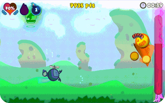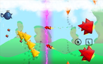 Short shoot 'em up where you can charge the powers of the player bullets. There is a boss fight where the bosses attacks are sync to the music.